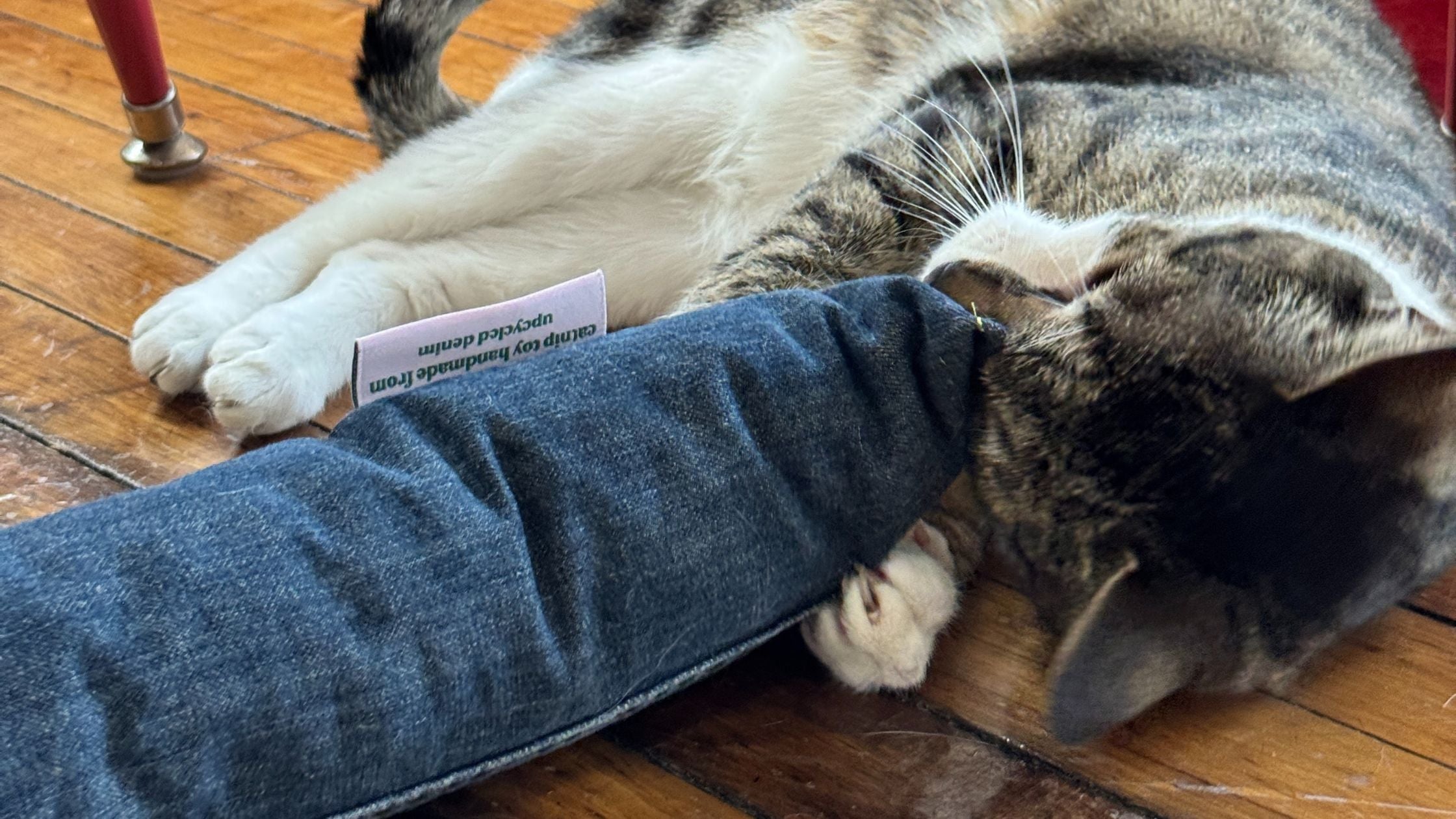 Feel good spoiling your cat with our upcycled denim catnip toys