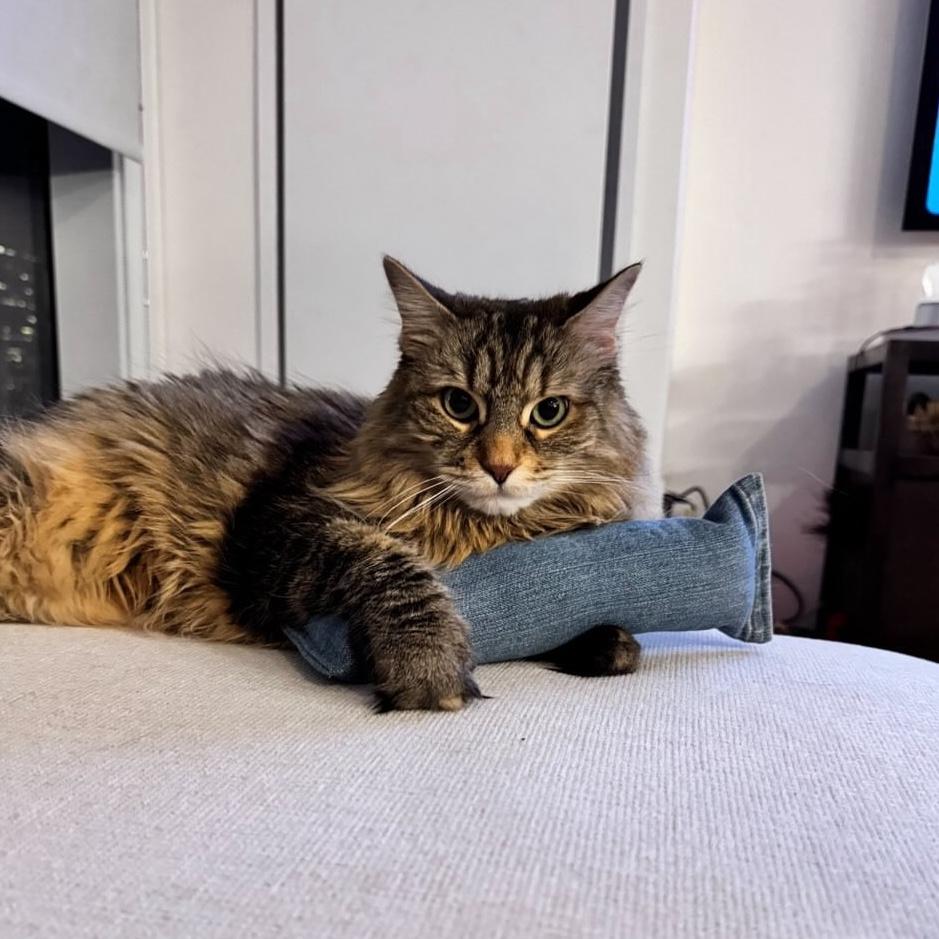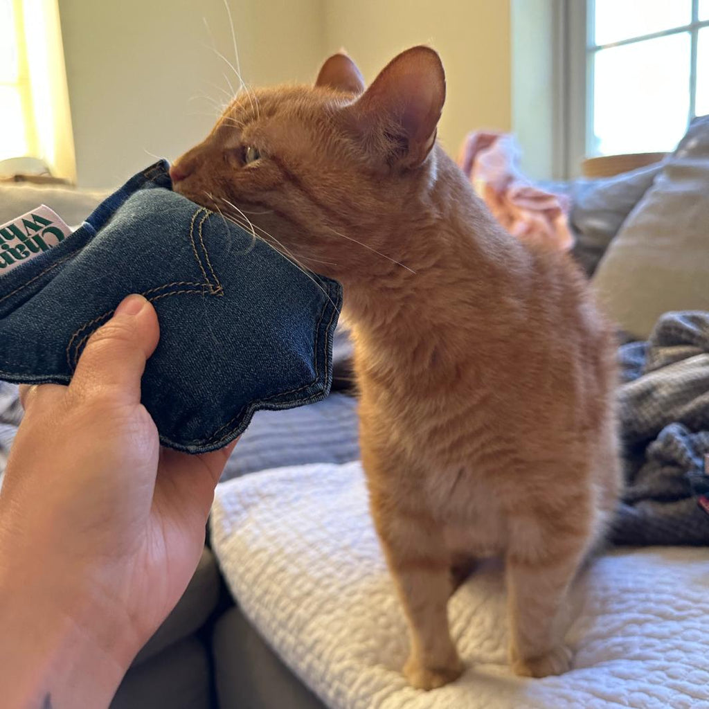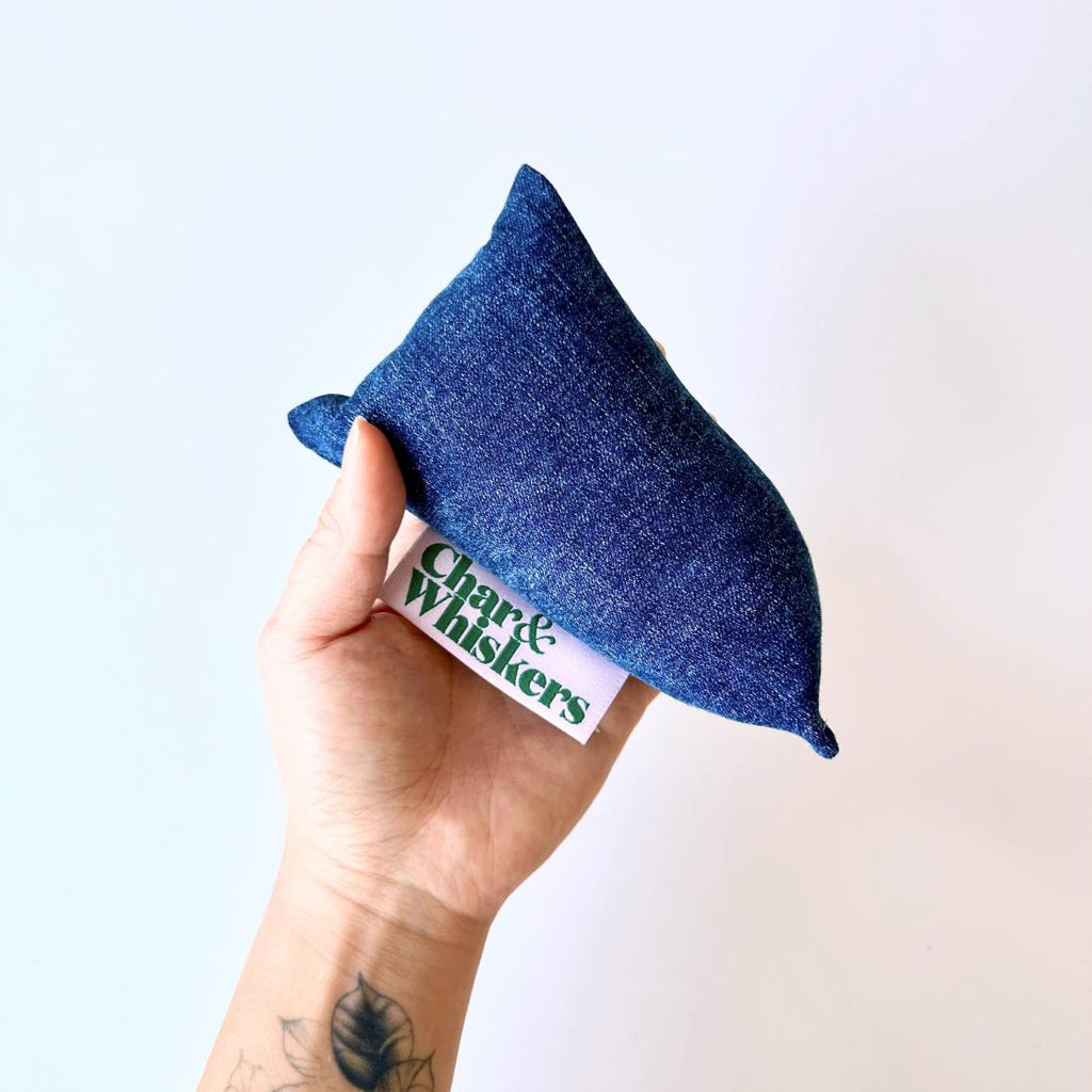 Feel good spoiling your cat with our upcycled denim catnip toys