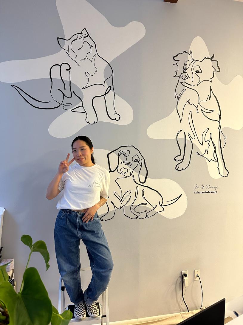 My name is Jie and I design and paint murals that you can find in public and personal spaces.